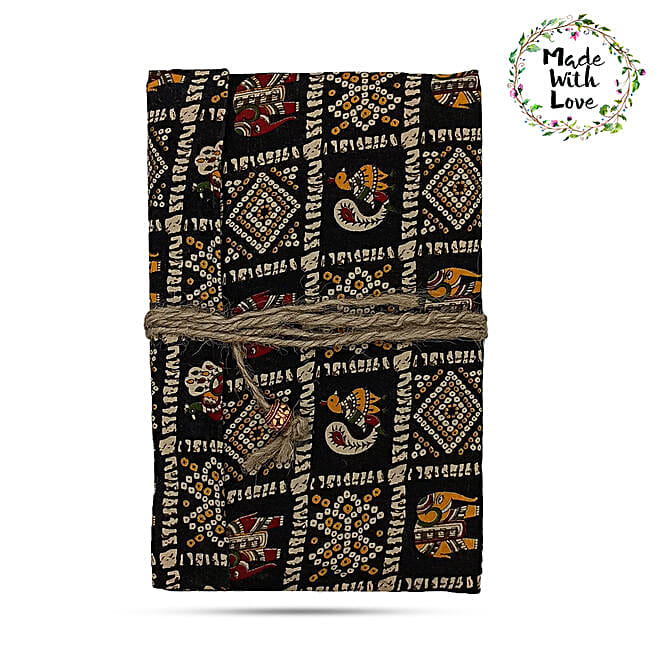 Black Nakshi Katha Soft Bound Handmade Paper Two Fold Notebook