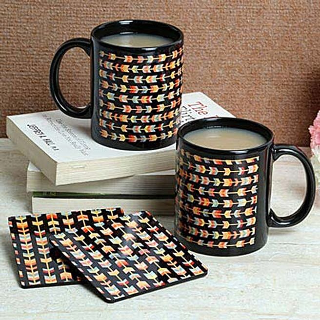 Black Print Coasters With Mugs