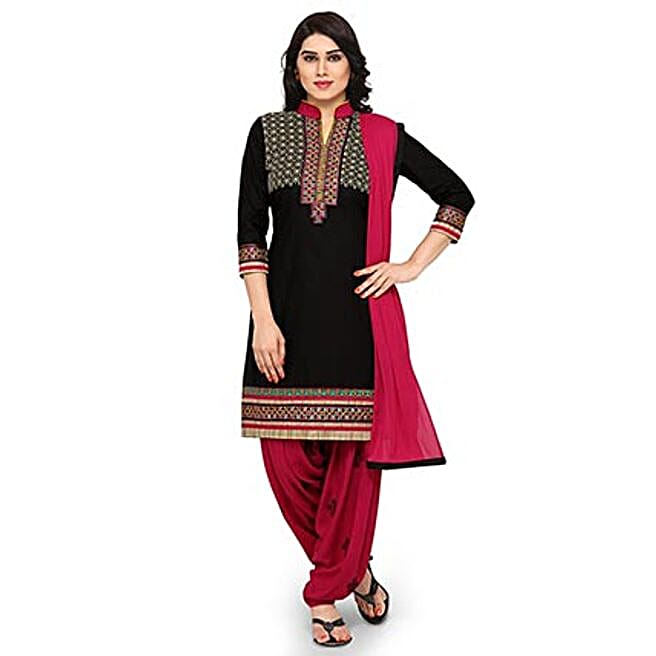 Black Pure Cotton Unstitched Patiala Salwar Suit