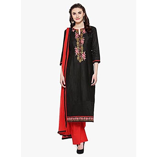 Black & Red Cotton Party Wear Dress