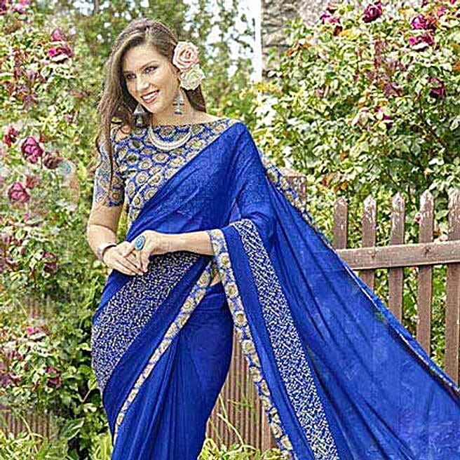 Blissful Blue Faux Georgette Saree