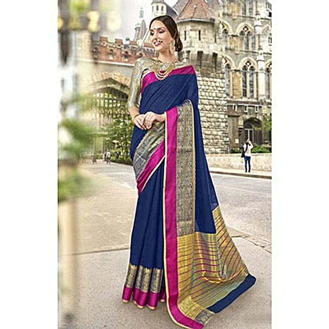 Blue Art Silk Woven Festival Wear Sarees