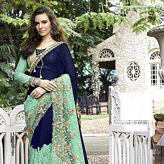 Blue Border Faux Georgette Festive Saree