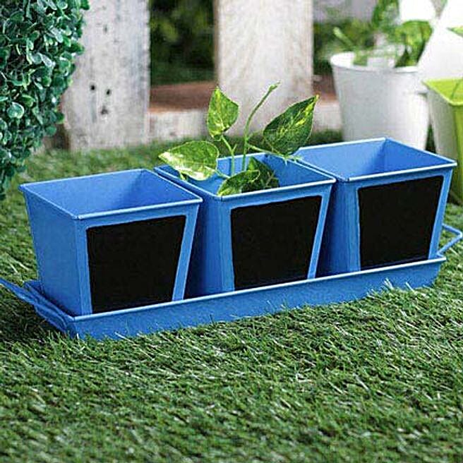 Blue Chalk Board Herb Planter Trio