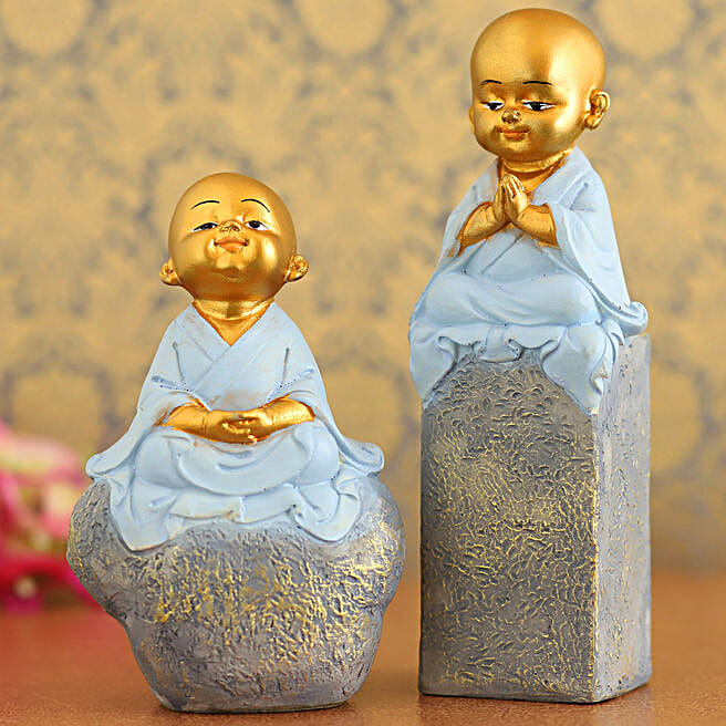 Blue Praying Monk Idols On Rock