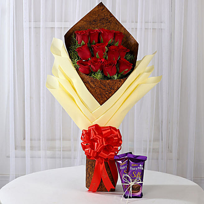 Bouquet of Red Roses & Dairy Milk Silk