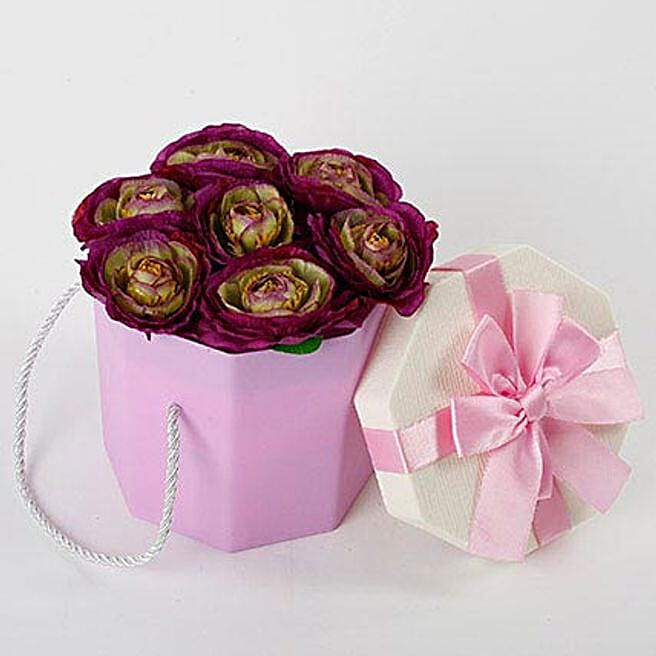 Boxed Artificial Purple Roses