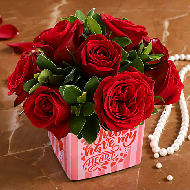 Bunch Of 10 Red Roses In You Have My Heart Sticker Vase