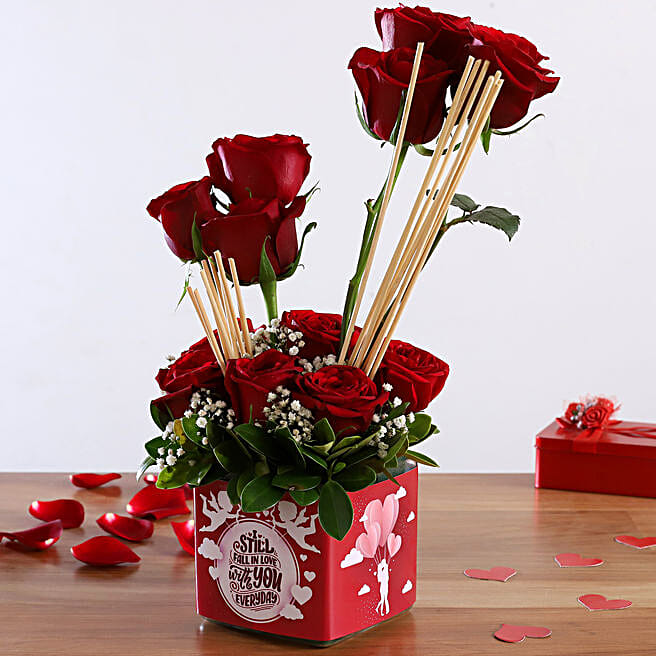 Bunch Of 12 Red Roses In Fall In Love Sticker Vase