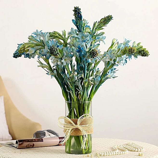Bunch Of 15 White Tube Roses In Cylindrical Vase