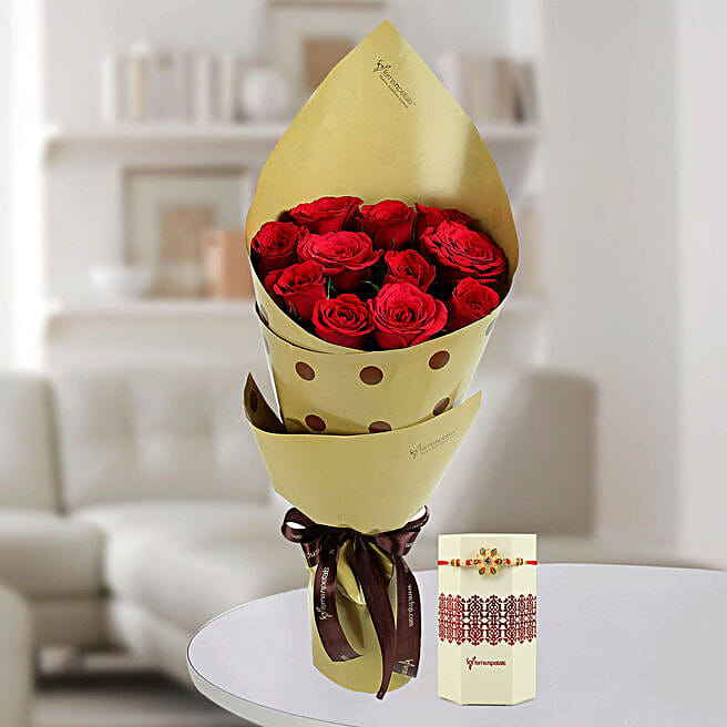 Bunch Of Red Roses & Meenakari Rakhi