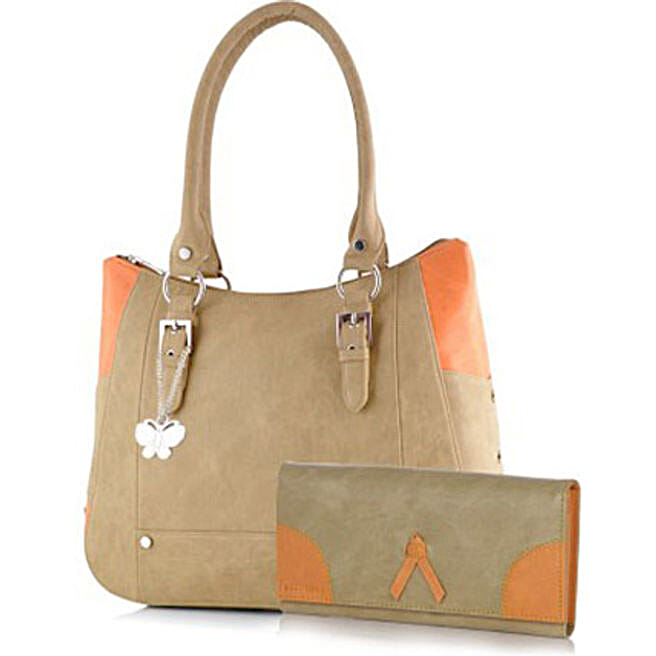 Butterflies Adorable Beige Handbag Combo