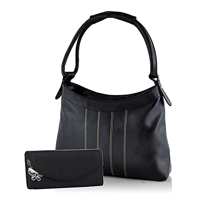 Butterflies Attractive Black Handbag Combo