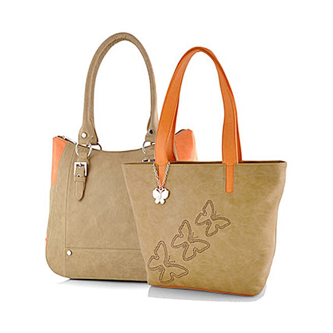 Butterflies Modish Orange N Beige Handbag Combo
