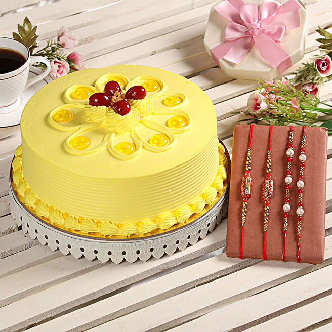 Butterscotch Cake & Set of 4 Rakhis