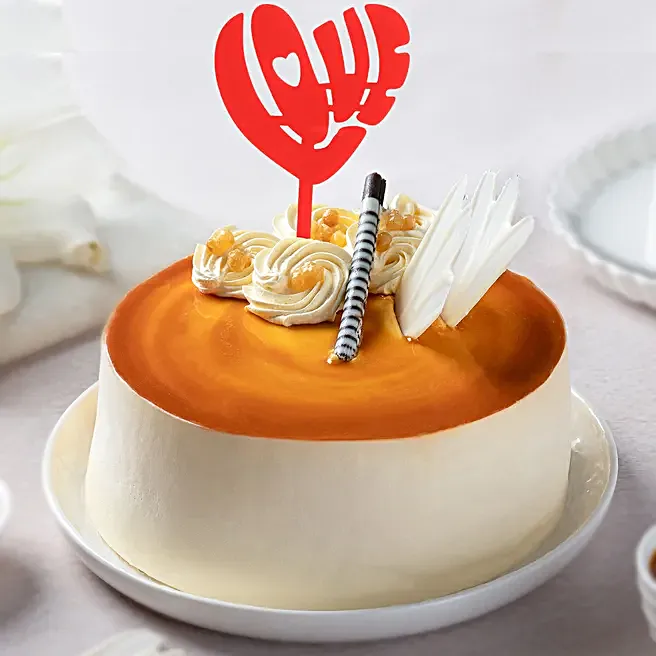 Butterscotch Cake With Love Heart Shaped Topper 1Kg Eggless