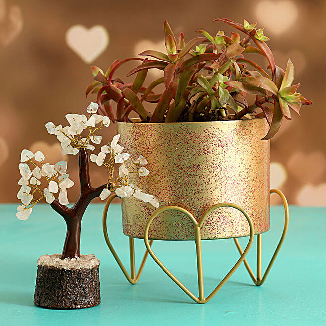 Campfire Plant In Gold Finish Pot & Wish Tree