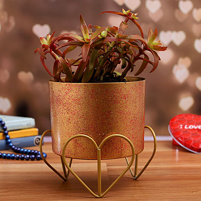 Campfire Red Succulent Plant In Gold Finish Pot