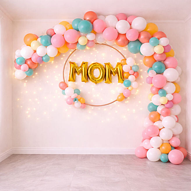Candy Blush MOM Halo Balloon Arch Setup