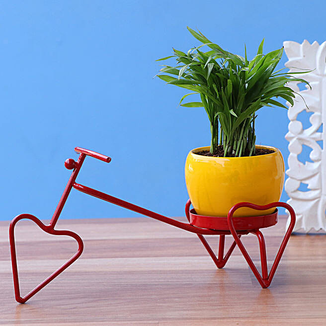Chamdaorea Plant In Yellow Pot On Red Heart Rickshaw