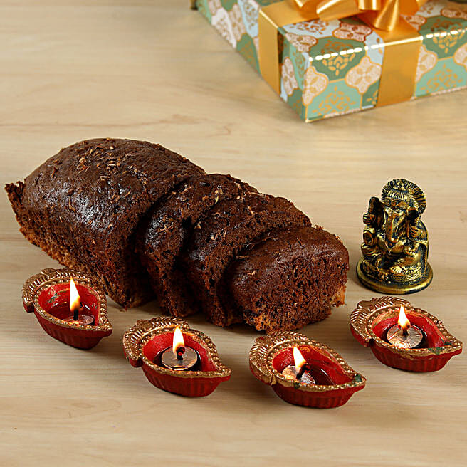 Chocolate Ginger Dry Cake With Diyas & Ganesha Combo