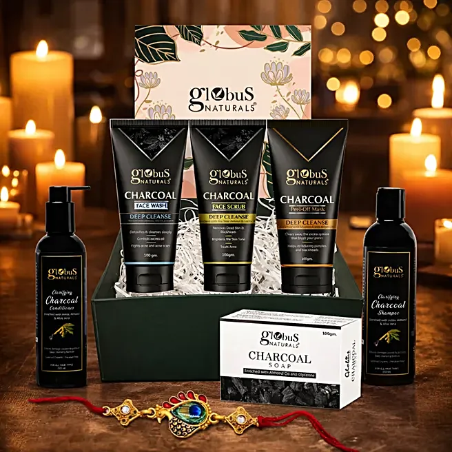 Colourful Designer Rakhi & Charcoal Detox Gift Box