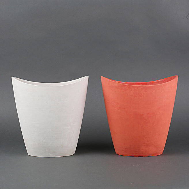 Combo of 2 Recycled Plastic Half Moon Vases Red & White