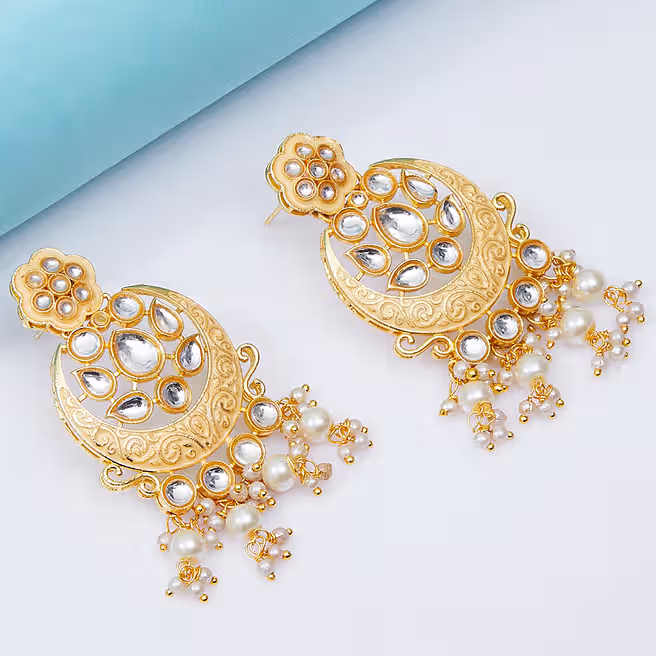 Crescent Moon Kundan Meenakari Dangle Earrings