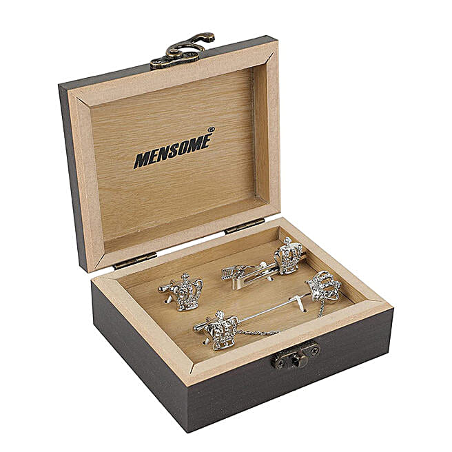 Crown Cufflinks With Lapel Pin & Tie Pin