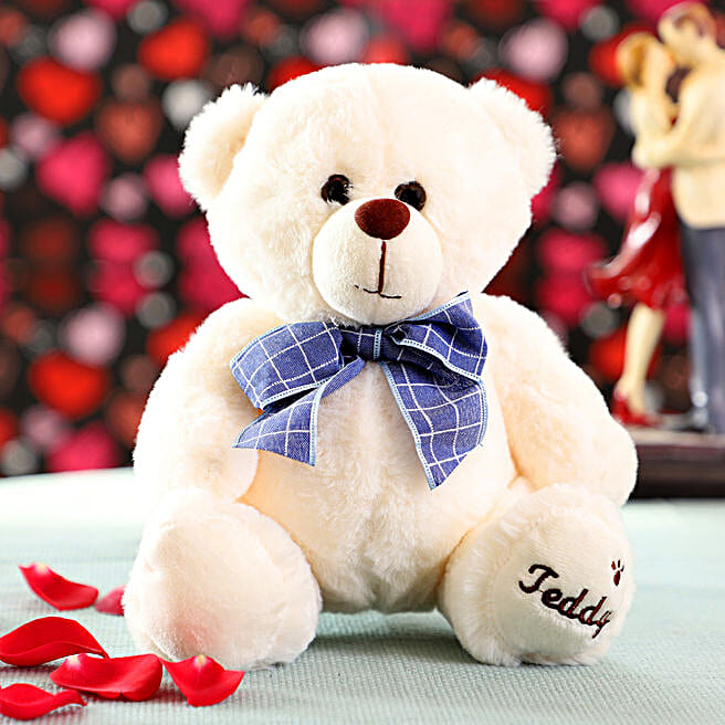 Cuddly White Teddy Bear With Bow