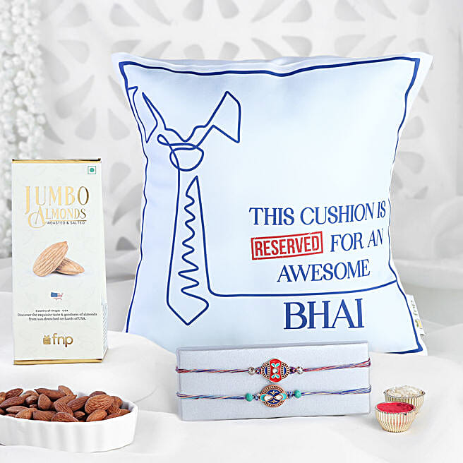 Cultural Charm Rakhi & Cushion Combo