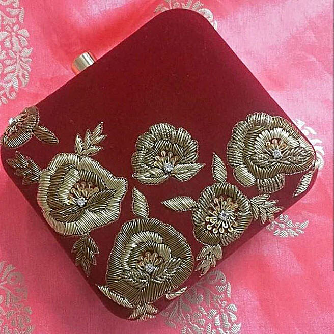 Red Velvet Clutch Bag 6 X 6 cms