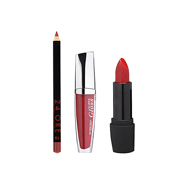 Deborah Milano Lip Gloss With Lip Pencil & Lipstick