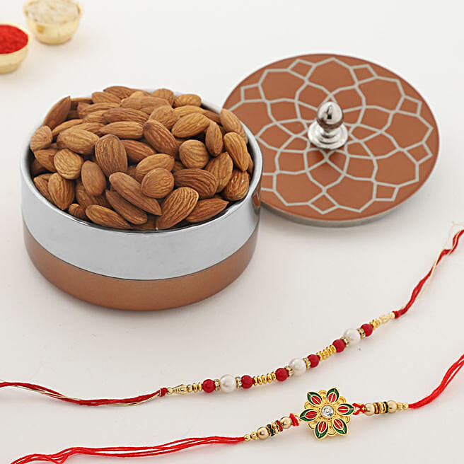 Arttd'inox Decorative Box & Almonds Rakhi Combo
