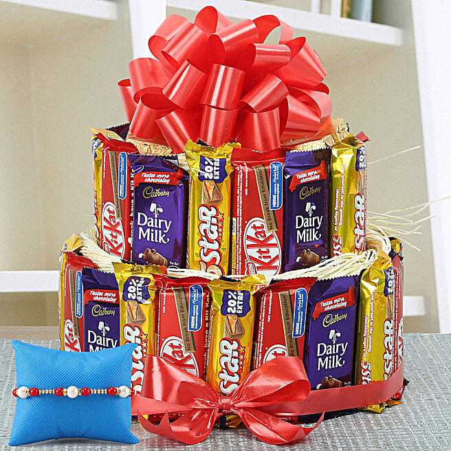 Delicious Chocolate Arrangement & Pearl Rakhi