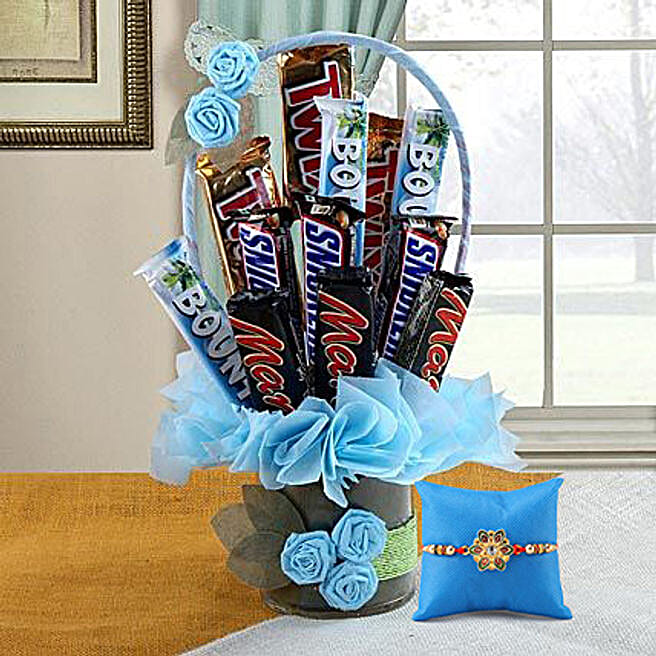 Delicious Chocolate Vase Arrangement & Rakhi