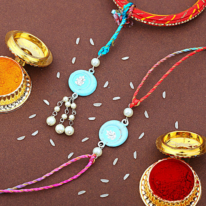 Designer Blue Rakhi Set for Bhaiya Bhabhi