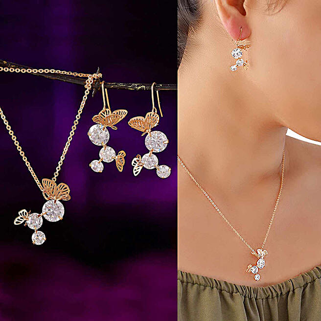 Designer Butterfly Pendant With Chain & Earrings