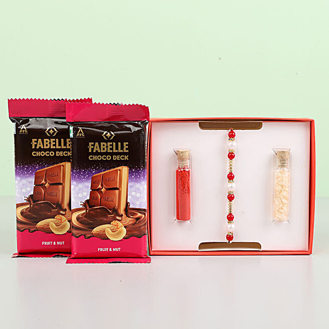 Designer Rakhi & Fabelle Fruit N Nut Bars Combo