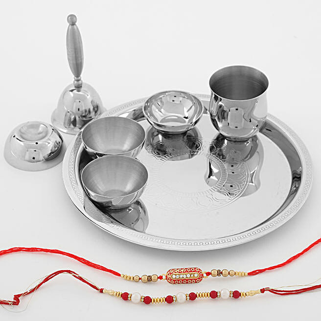 Arttd'inox Designer Family Thali Set & Rakhi Combo