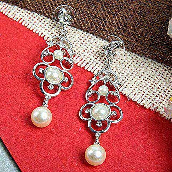Designer Silver plated white beads Earring