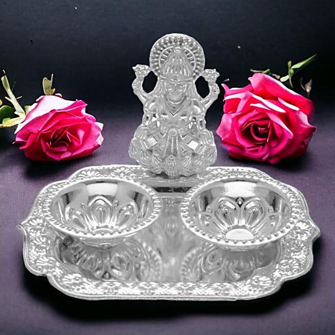 Diwali Aarti Silver Lakshmi Diya Gift Thali