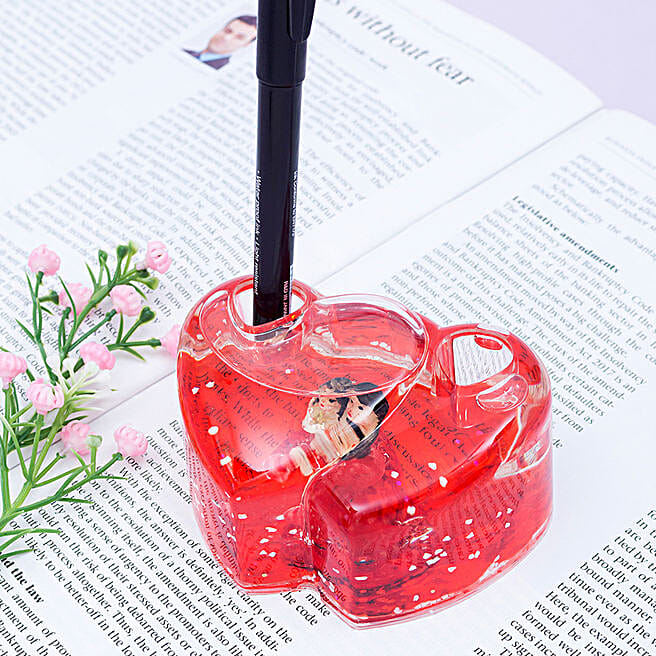Double Heart Shaped Paper Weight With Pen Holder