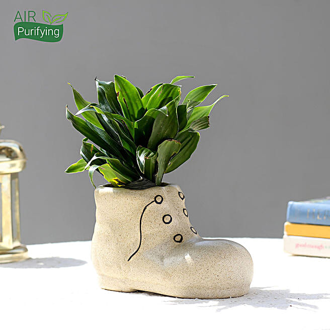 Dracaena Plant In Shoe Shaped Ceramic Pot
