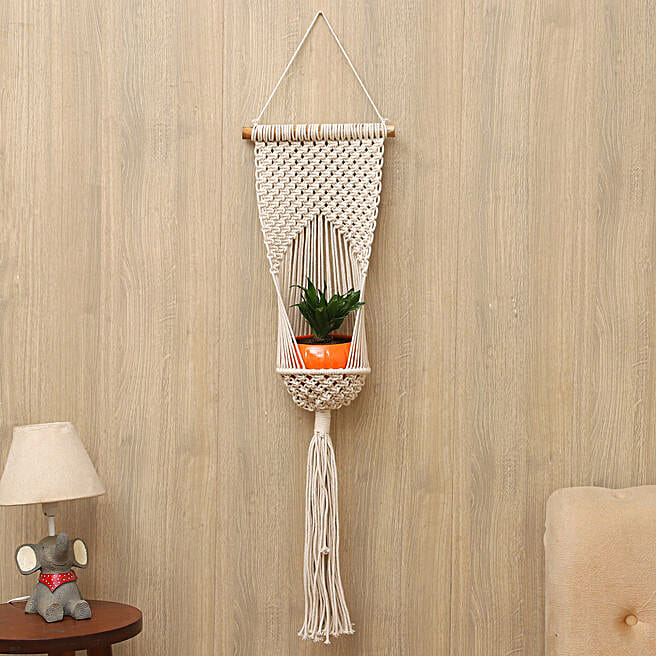 Dracaena Plant With Beige Hanging Planter