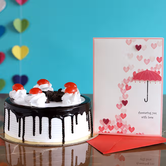 Dripping Black Forest Cake & Love Umbrella Card