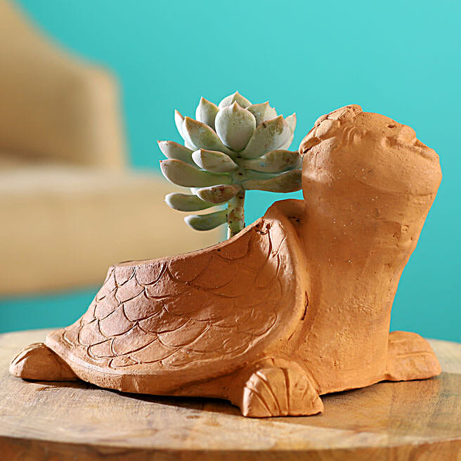 Echeveria Elegans Plant In Turtle Shaped Terracotta Pot