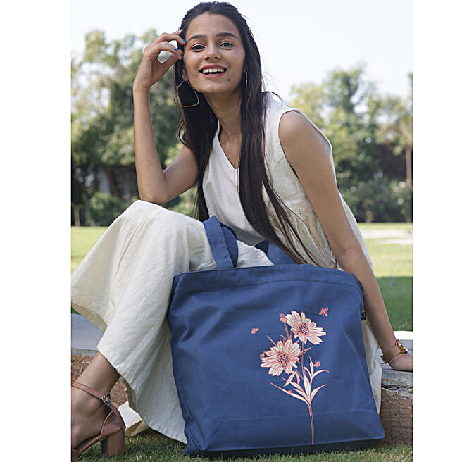 EcoRight Canvas Floral Bliss Blue Tote Bag