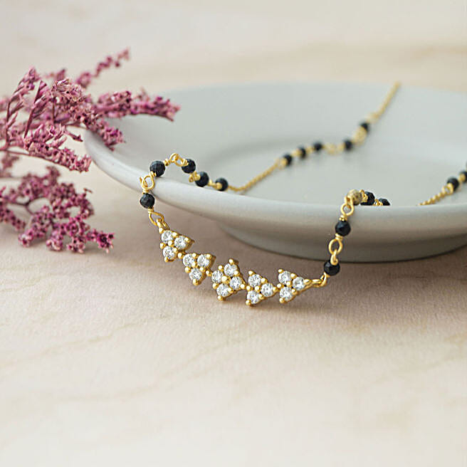 Elegant Bloom 925 Silver Mangalsutra- Gold
