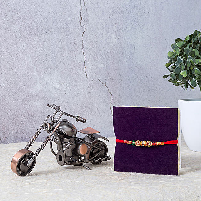 Elegant Designer Rakhi and Motor Bike Showpiece